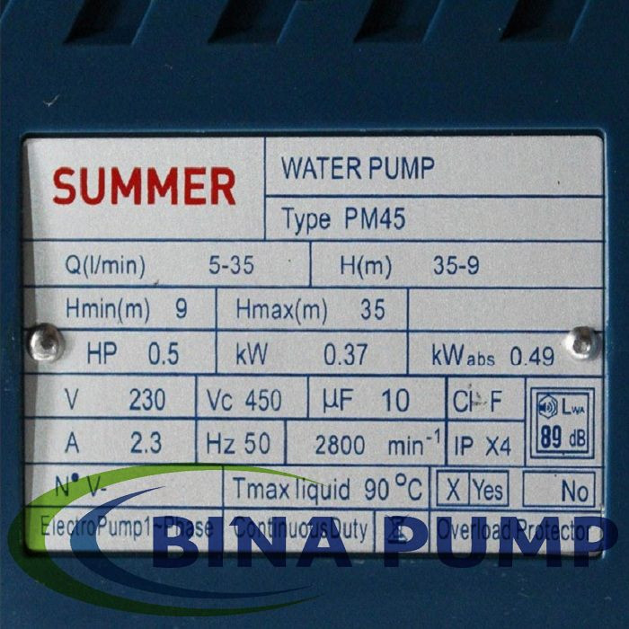 پمپ نیم اسب سامر ساخت کشور چین میباشد.این پمپ یکی از پر فروش ترین پمپ های نیم اسب چینی داخل بازار میباشد.