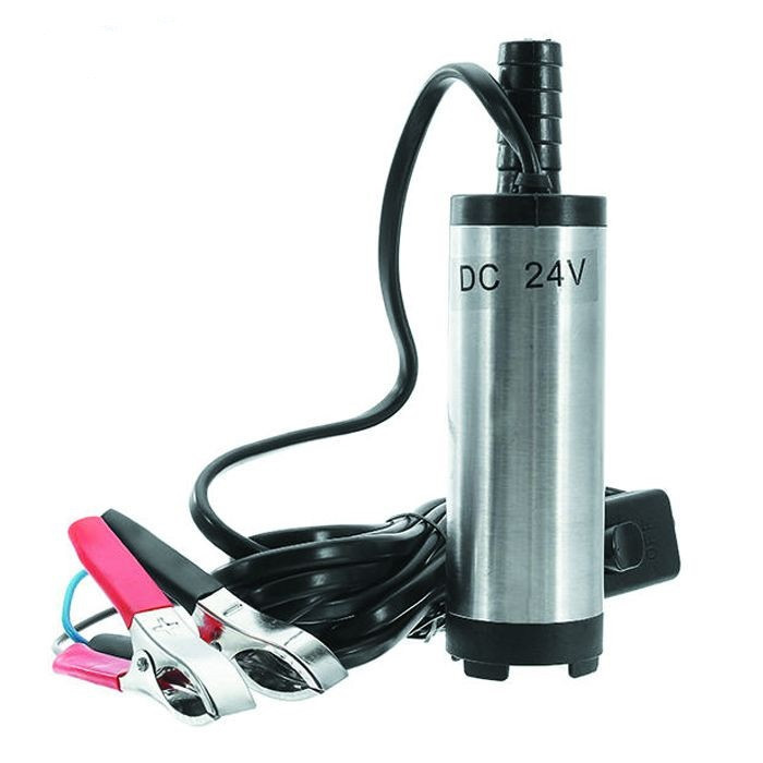 پمپ گازوئیل کش با برق 12 ولت (برق باطری خودرو ها سنگین ) کار می کند. این پمپ میتواند از داخل مخزن یا باک ماشین آلات (بنزین ، گازوییل، روغن، کروزنو، پارافین، روغن هیدرولیک و سایر روغن ها تا 15 سانتیمتر) سوخت کشی انجام دهد. این پمپ ها می توانند از ارتفاع 5 متری مکش کرده و با قدرت بسیار بالا تا 10 متر ارتفاع سوخت رسانی انجام دهد.از ویژگی های مهم این پمپ ها سرعت سوخت کشی است. در واقع به علت نیروی خوب موتور این پمپ ها، به راحتی می توان انتقال را انجام داد. در واقع به علت نیروی بالای موتور پمپ گازوئیل کش برقی ماشین آلات راهسازی، به راحتی می توان انتقال را انجام داد.پمپ تخلیه گازوئیل دارای انبرهای سوسماری شکل برای اتصال به برق باطری می باشد و دارای کلید روشن خاموش میباشد
