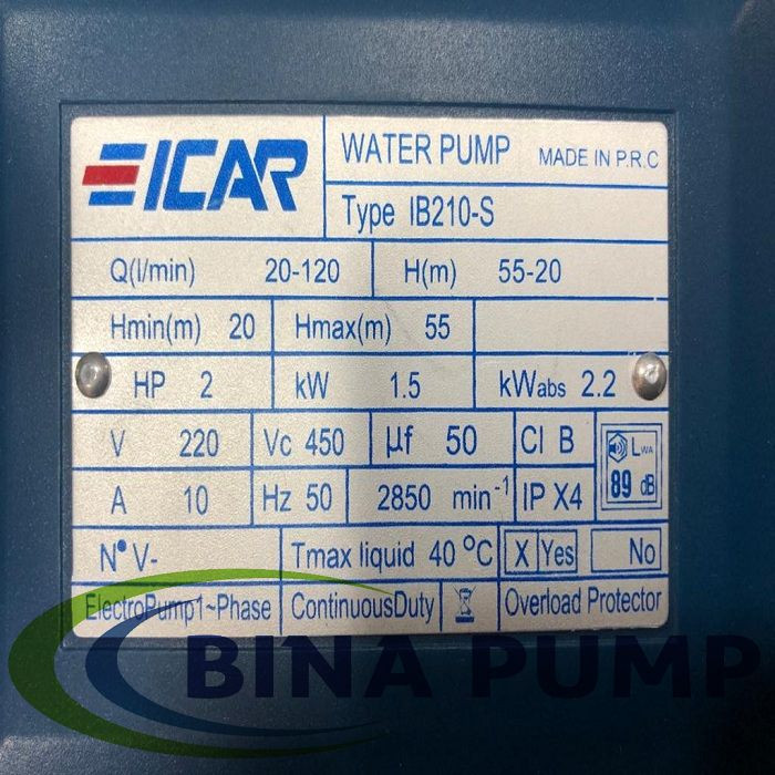پمپ آب 2 اسب 2 پروانه ایکار مدل IB210 ساخت کشور چین سیم پیچی است محصول از جنس مس می باشد دارای شافت استیل جهت بالا رفتن طول عمر محصول پمپ دو اسب دو پروانه پروانه ایکار برای مصارف ساختمان ها و آتشنشانی تا پنج طبقه دو واحدی ،انواع آبنما،آبیاری،جابجایی مواد با ویسکوزیته پایین،تخلیه استخر و… مورد استفاده قرار میگیرد.